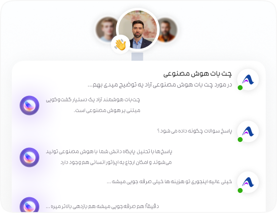 چت بات شما همیشه آماده پاسخ به سوالات کاربران است و با یادگیری مستمر، کیفیت پاسخ ها را بهبود می بخشد. مکالمات پیچیده به اپراتور انسانی ارجاع داده می شوند.